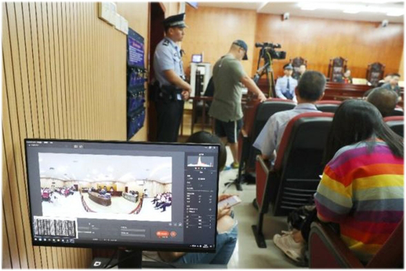 南昌市中级人民法院运用VR技术与法院审判业务相结合,将庭审直播从传统单一的平面视频提升到地感受庭审全过程,并可自由选择观看视角,听取法庭辩论,感受法槌敲击的司法瞬间。为群众提供了一种新形式的庭审场景。